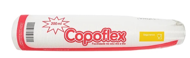 Copo descartável Copoflex de 200ml, fabricado em poliestireno (PS) transparente. Embalagem com 100 unidades, ideal para uso diário.