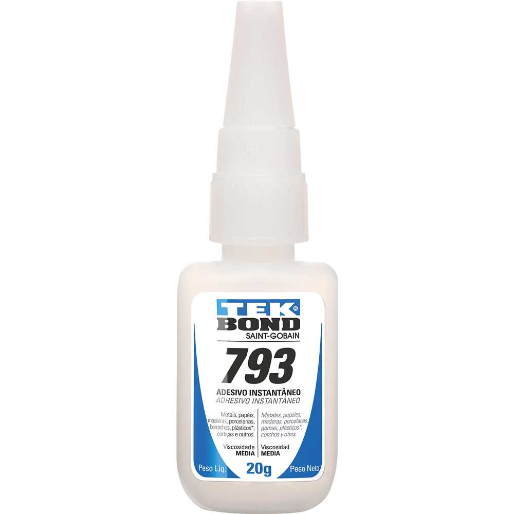 Cola Instantânea 20G Tekbond 793: A solução rápida e eficiente para suas colagens, ideal para materiais porosos e de difícil adesão. Garanta um acabamento impecável e alta resistência em seus projetos com a qualidade e confiabilidade Tekbond. Esta cola de média viscosidade oferece uma cura rápida, otimizando seu tempo e garantindo resultados duradouros.
